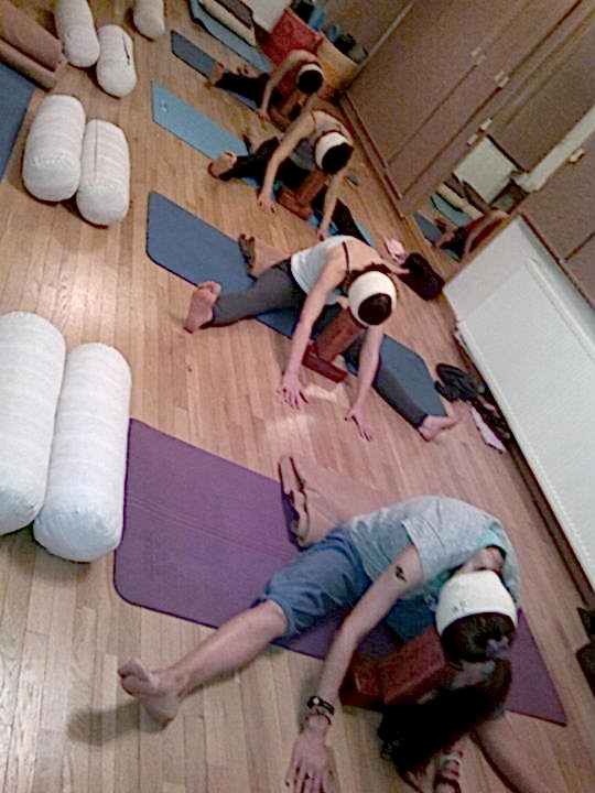 Beden, yastıklar, battaniye, sandalye, blok ve diğer malzemelerle desteklenir ve mümkün olan en derin gevşemeye davet edilir.